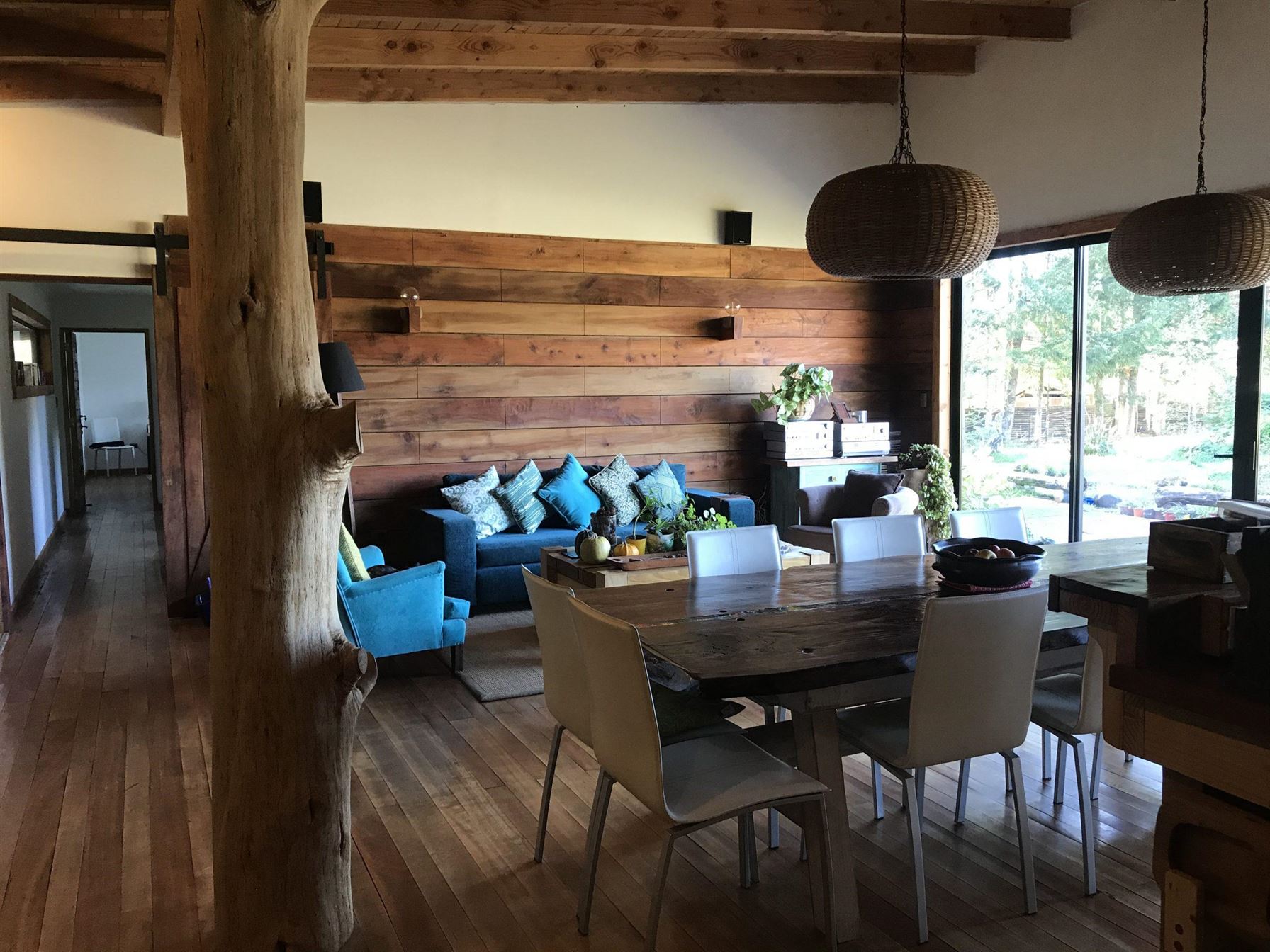 Hermosa casa cerca del hotel Villarrica Park Lake con diseño estilo mariposa con dos alas de dormitorios, sala principal con living comedor y amplia cocina estilo de campo ideal para vivir dos familias.