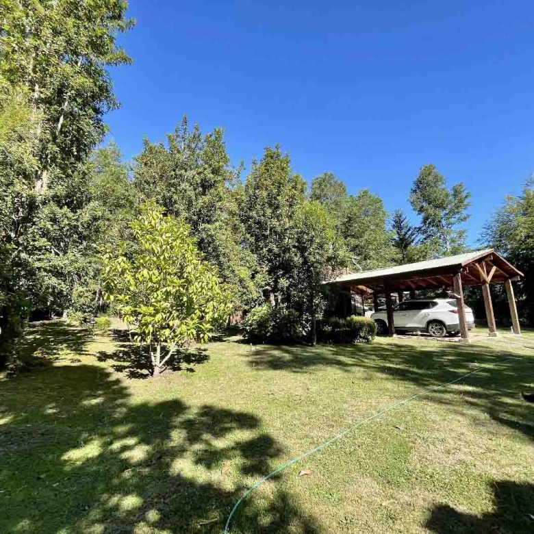 Hermosa Casa de campo emplazada en 1 Hectárea de jardines prados, árboles y flores. Ubicada a orilla de camino asfaltado que conecta a Caburgua con Quelhue – Pucón en un camino borde rio donde puedes ver el Salto de Carileufu ( Aguas Verdes) , muy cercano a los Ojos del Caburgua, mirador de peces, zonas de pesca, restaurantes y hoteles.